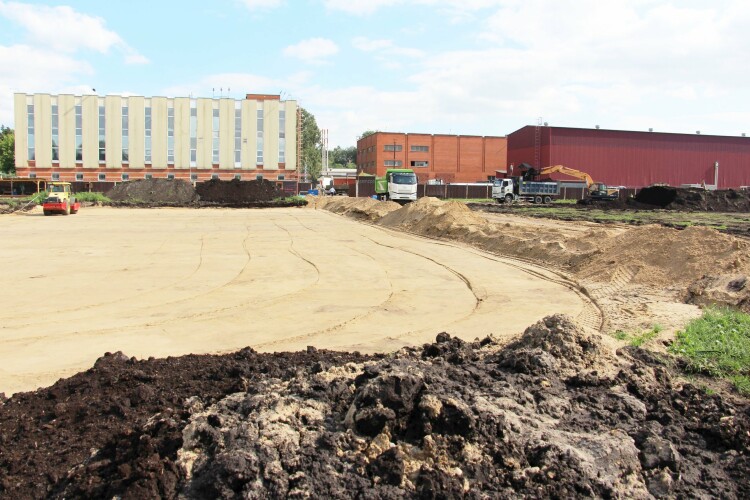 На строительной площадке обустроен бытовой городок, установлен пункт мойки колес автотранспорта, разбиты оси фундаментов, проложены временные технологические дороги, откопаны котлованы фундаментов общим объемом более 6000 куб. метров, заканчиваются работы по устройству песчано-гравийной подготовки с вибрационной трамбовкой основания и контролем его плотности. Значительная часть извлеченного из котлованов торфа передана муниципальным структурам округа для благоустройства школ и детских учреждений.