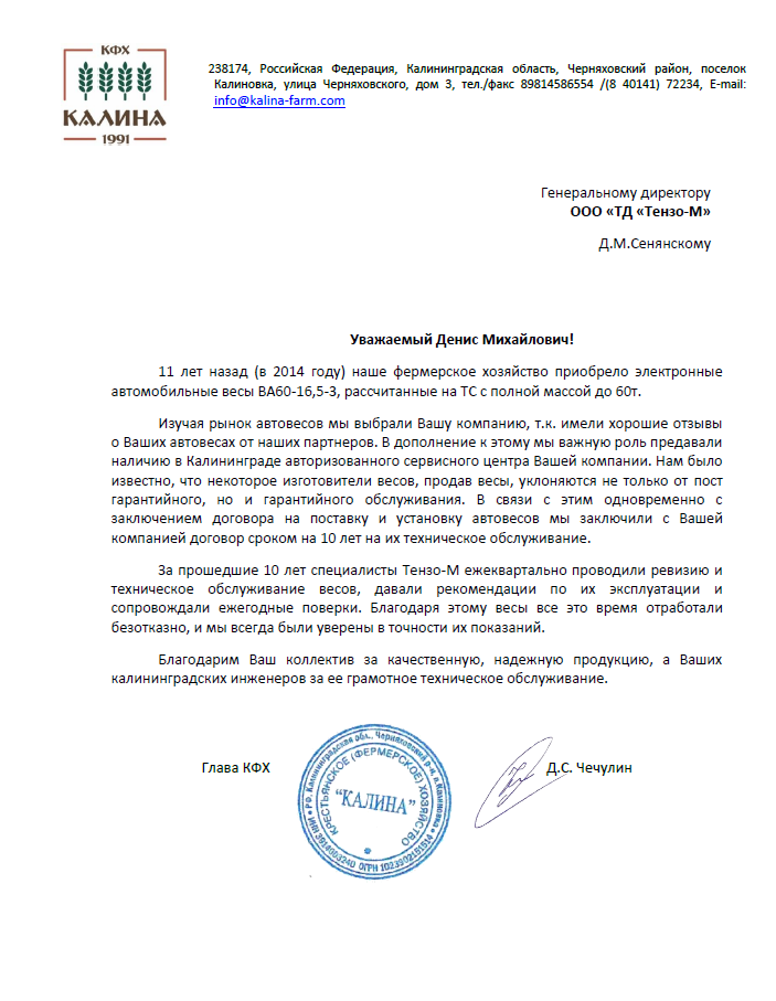 Генеральный директор АО ВИК «Тензо-М», кандидат технических наук, Сенянский М.В.